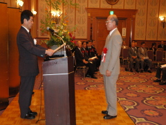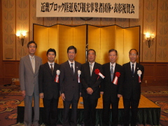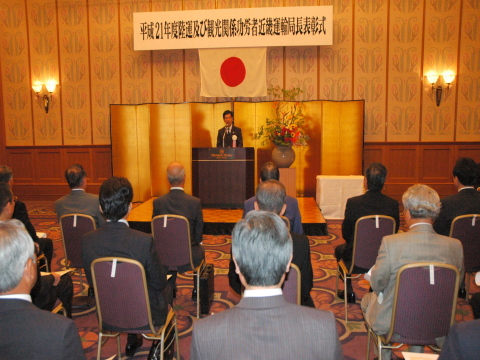 近畿運輸局(各務正人局長)は6月5日、大阪市天王寺区のシェラトン都ホテル大阪で、平成21年度(第38回)陸運および観光関係功労者近畿運輸局長表彰式を行った。今年は26名が受賞した。兵庫県からは、トラック部門の(株)大木産業の大亀保彦氏、(株)浜田運送の濱田長伸氏、自動車整備部門の神戸ボディショップの鍋島賢城氏3名が受賞。 各務局長は受賞者一人ひとりに賞状と記念品を手渡し、その功績を讃えた。式辞で各務局長は、「更なる安全で良質なサービスの提供で利用者から信頼を得ること、社会のグローバル化の中で我が国発展の課題である観光立国実現に向けた推進活動」を求めるとともに「今後とも各分野のリーダーとして多面にわたる貴重な経験をもとに交通・運輸・観光事業の発展と後進の指導にご尽力ください」と述べた。 また、来賓を代表して角和夫関西鉄道協会会長は、「昨年末からの戦後最大の世界同時不況に加え、新型インフルエンザの影響など、景気後退との相乗効果により近畿圏の企業経営は苦しい難局にありますが、陸運および観光関係業界に課せられた社会的使命・責務の重大さは変ることがない。これまで以上に関係協会が連携していかなければならない。受賞されました皆様には本日の受賞を契機として地域発展・近畿圏の発展の為なお一層のご尽力とご活躍を念願します」と、祝辞を述べた。