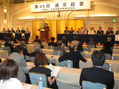 全国自動車無線連合会(藤本國男会長)は11日、京都市の京都帝国ホテルオークラで第49回通常総会を開き平成20年度事業報告、決算を承認、デジタルタクシー無線の普及・推進。公的補助制度の充実・拡大、公益法人制度への適正な対応、全自無連50周年記念の基準など事業計画及び予算を原案通り決定した。閉会直前にタクシー特措法が衆議院を全会一致可決とのニュースが舞い込んだ。