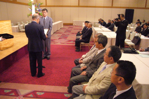 兵庫県自動車整備商工組合代議員会に先立ち、支部に対する昨年度の購買販売事業表彰が行われ「売り上げ実績」と「前年度比アップ」の各上位5支部に賞状と賞金が贈られた。
