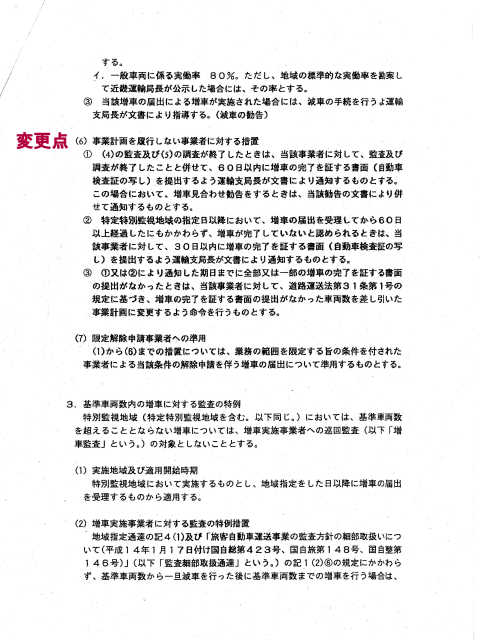 さらに、これらを通知した期日までに全部又は一部の増車完了を証明する書面が提出されなかった場合、道路運送法31条第1号の規定(事業改善の命令)に基づき書面の提出がなかった車両数を差し引いた事業計画に変更するよう命令できる。