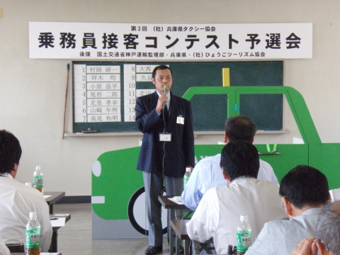 兵庫県タクシー協会(松本奈良雄会長)は、8月19日、「タクシー乗務員接客コンテスト」(第3回、10月8日・生田神社会館)に出場を決める郡部地区を対象とした「姫路会場予選会」を姫路市西庄クボリ151の姫路乗用自動車事業協同組合会館で実施した。