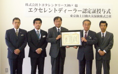 トヨタレンタリース神戸(川端登社長)は8月28日、東京海上火災日動よりエクセレントディーラー特級代理店認証を受けた。