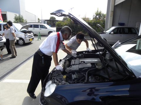 冒頭、中谷会長は「姫路の自動車整備のプロを招いて参加者と点検の『同時体験』をしてもらう。普段は足代わりとしてしか考えていない車だが、車も人間も健康が第一なのは同じ。生活の『パートナー』でもある車の仕組みにも触れることで理解を深め、よりよい関係を築くことができれば、また『黄色い看板のある、安心できる整備工場』で車の健康チェックもすすんで受けてもらえば…と考える」とあいさつ。