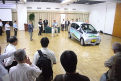 姫路三菱自動車販売(西原興一郎社長)は9月15日、姫路商工会議所や姫路市らが姫路商工会議所展示室で緊急企画開講した「自動車産業はどう変わっていくのか.自動車産業の構造変化から生じるリスクとチャンス」の会場にi‐MiEVを展示したところ、高い関心を集め、社員が説明に奔走し、講演会議後には同展示場内の走行要請にも応じ「新時代」を見せた。 >>2ページ目へ続く