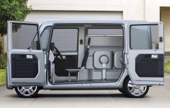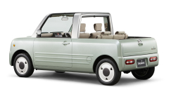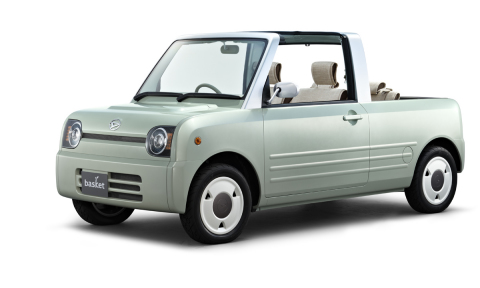 低床フラットフロア技術を用いた、様々なホビーに対応できる大空間を持つ「スーパーボックス」。 低床フラットフロアとピラーレス観音開きドア(135°)による、抜群の積載性&乗降性。 車内での作業や大きな荷物の積載にも応える、アレンジ自在な薄型格納式シート。 明快な立体構成とソリッドな造形で安定感のあるたくましいエクステリア。 機能に徹した使い応えのあるモダンなインテリア。 basket(バスケット) オープン4シーターと広々デッキで、家庭菜園等のほのぼの生活を満喫できる「スローライフビークル」。 前席ルーフ、後席キャンバストップともに脱着可能な4シーターオープン。 汚れを気にせず、気楽に使える後部デッキ。 麻の素材感をモチーフとしたリラックスできるシート&インテリア。