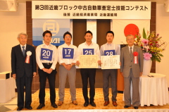 今年度は近畿の各府県から地区予選を勝ち抜いた36名が参加した。 兵庫県から出場の西田純氏((株)ホンダクリオ明舞)が500点満点中433点で1位となり、来年開かれる全国大会へ近畿代表として出場することが決定した。 さらに、同県から出場の村上祥平氏(兵庫トヨタ自動車(株)・425点)が3位に入り、8位には安田收穂氏((株)神戸マツダ・412点)が、10位には木下徹哉((株)神戸マツダ・407点)が入賞し、上位を占めた。 成績発表は次の通り。以下敬称略。 1 位 西田 純 (株)ホンダクリオ明舞 433点 2 位 田原 堅一郎 京都三菱自動車販売(株) 427点 3 位 村上 祥平 兵庫トヨタ自動車(株) 425点 4 位 片岡 健 ネッツトヨタ京華(株) 423点 5 位 小西 滋 滋賀トヨペット(株) 423点 6 位 秋山 圭太郎 滋賀トヨタ自動車(株) 418点 7 位 高橋 理樹 滋賀トヨペット(株) 413点 8 位 安田 收穂 (株)神戸マツダ 412点 9 位 俵 雅志 西日本三菱自動車販売(株) 411点 10 位 木下 徹哉 (株)神戸マツダ 407点 詳細は次号で。