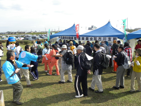 両日とも中央会場(加古川市役所)をスタート・ゴール地点とし、10〜40キロの4コースを設定。今回は第20回の記念大会ということもあり、小学生以下は無料にて参加、10キロコースでは多くの親子連れの姿が目立った。 15日加古川河川敷に設置された加古川支部のテントでは、ツーデーマーチ参加者に無料でドリンクが振舞われた。また、前日に比べるとやや肌寒い風が吹いた為、同じく無料で配られたポケットティッシュが大変喜ばれていた。 マイカー点検を訴求するのぼりの横で、てんけん君は訪れた子供たちから人気を集め、記念撮影の行列が出来るなど支部の認知向上に貢献した。