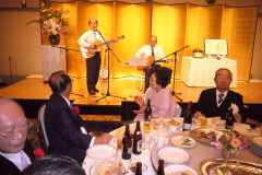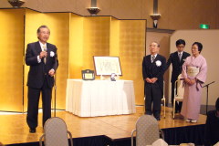 同氏は今年1月に交通安全栄誉章・緑十字金章を受賞後、7月1日付で警察庁が民間人を表彰する最高位の警察協力章が贈られた。警察協力章は今年度、全国35人、近畿で5人、県下では森氏ただ一人に贈られた。 世話人代表となった尼崎運輸事業協同組合理事長の坂尾洋南尼崎南交通安全協会副会長は「尼崎から1件でも多く交通事故を防ごうと43年間も努められ、そうした森氏のボランティアなどによる留守を夫人は43年間も守られてきた」。 明石利夫尼崎南署長は「挨拶にはいつも正確な数字が引用され、分かりやくす参加者に語られる。我々も市民の安全確保に森さんを見習って歩んでいきたい」。 市内4交通安全協会を代表して、石原一興尼崎東交通安全協会長は「一旦言い出すと引かない頑固さの半面、大変思いやりのある人柄。一層のご活躍を祈念します」。寺本たかし前県議は「県立尼崎北高校同窓会長を引き継がれるのは警察にこだわらず地域の安全安心に取り組む森さんしかいない」と。 市長からのお祝いメッセージも寄せられた。 森氏は「受章は私を支えていただいた皆さん、歴代の署員や協会役員のおかげです。理事就任43年間では、阪神淡路大震災による渋滞や事故の抑制に奔走したこと、会長就任5年間では平成17年に50周年を迎え、センタープールに市民2千500人を迎え、親子3代自転車講習など交通安全フェスタを地域密着で催したことが印象深い。今後も安全快適な車社会へ頑張りたい」とお礼を述べた。 花束贈呈などのあと、二男と三男である正浩氏と満氏による演奏があり、陶國隆男尼崎中央交通安全協会長が万歳三唱の音頭をとった。 最後に同社社長でもある正浩氏は「普通は世話人にほとんど奔走していただくが、父の場合は嬉々として準備していた。受章は森家の誉であり、兄弟3人それぞれの事業発展の契機としたい」とお礼と決意を述べた。