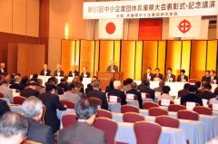 兵庫県中小企業団体中央会(河野忠博会長)は11月11日神戸ポートピアホテルで、「第51回中小企業団体兵庫県大会」を開催。兵庫県知事賞などの表彰式と大会決議を採択、続いて福岡政行・白鴎大学教授を招き記念講演と交流パーティーを行った。