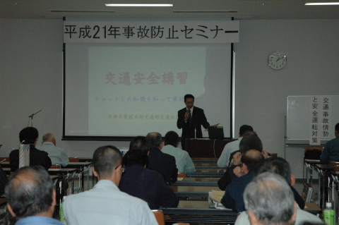 兵庫県交通共済協同組合(森川武夫理事長)は11月7日、姫路自動車整備教育会館で、経営者や運行管理者を対象に、上畑雅之・兵庫県警察本部交通企画課課長補佐と新谷昌生・元兵庫県自動車整備振興会事業相談部長を講師に招き「事故防止セミナー」を開いた。