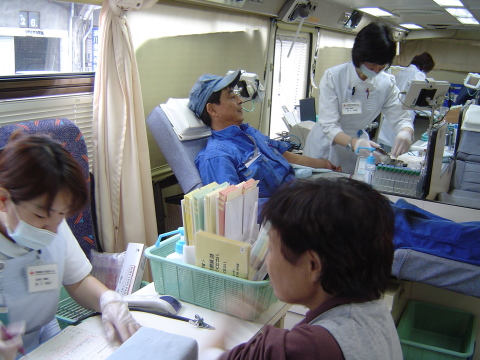 今回はロータスクラブのメンバーも参加。63人が応じ、50人から献血が得られ、合計1万9600mlを確保し前回を上回った。 「自動車業界に携わる者として、交通事故で苦しむ人の役に立ち たい」と(有)中野自動車中野良雄会長の父武重氏が昭和45年に開始。厚生労働大臣表彰を受賞し、今年で39年目・80回目の開催。 近くを通りがかった男性は、「800mlでよろしく」と勢いよく参加。毎回参加している女性は、「何か社会貢献になればと思い、16歳の時から始めました。すでに70から80回献血し、赤十字から金賞をもらったんです」とほほ笑んだ。 参加者には、お菓子の詰め合わせをプレゼントした。この献血は年に二回、4月と11月に行われている。