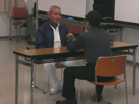 四間警部補(兵庫県警察本部刑事部組織犯罪対策局暴力団対策課)は、不当要求を求めるクレーマーに扮し迫真の演技で対処方法を指導。参加者代表はロールプレイングで学びつつ応対に困るシーンもあった。