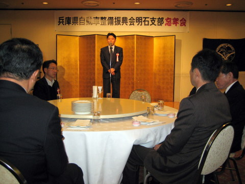 兵庫県整備振興会の明石支部(高崎勝支部長)は5日、グリーンヒルホテル明石で忘年会を開き、支部会員の1年間の労をねぎらい、親交を深めた。来賓には北口寛人・明石市長も駆けつけた。
