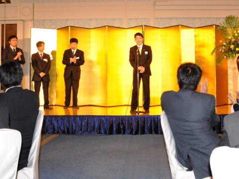 第2部の式典では、上田直樹・同会実行委員長が開会宣言を行ったのち、山本理事長が「自動車保有台数や新車販売台数、総整備売上も総じて減少に転じ、景気後退の局面に入っています。こういった難しい時代だからこそ、自動車青年会議所の存在意義が高まってきているのではないでしょうか。とるに足らない小さな行動でも、行動することで何かが変わってくると思います。行動こそ真実と言います。すべての人々に愛を届け、公明正大に行動することで信頼関係が生まれ、魅力ある経営者となり、事業が発展していくと思います」とあいさつした。 続いて、近青協各クラブや徳島県自動車整備振興会青年部などの友好団体による活動報告を行った。 兵庫県自動車青年会議所の活動報告では、山本理事長が本年度のスローガンである「Change!〜自己革新」について紹介し、「ピンチはチャンスと言われます。今こそ自己革新のチャンスであり、今までの仕事を見直す時期です」、「それには人間力をアップすることです。JMCや近青協に参加し、多くの人と出会い、学び、刺激を受け自分を変えてもらいたい」と呼びかけた。 次に、平井隆志・近畿運輸局自動車技術安全部長は「将来にわたって自動車業界が発展をしていくためには若い皆様方の力がなくてはなりません。自動車業界の為により大きな役割を果たして頂きたい。大きな期待を抱いています。自動車関係の市場はある一定の規模の中で競走し発展していくという、厳しい状況が続くのではないかと思います。自動車の平均使用年数は乗用車で11.68年、貨物で13.50年と過去最長を記録しています。車齢の高く入念な整備が必要となる車両が今後も増加していく傾向にあります。一方でハイブリット車など高度な技術を持った自動車が普及されつつあります。時代の変化にも迅速に対応する為には元気で明るく活気のある業界が必要です」と祝辞を述べた。