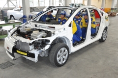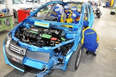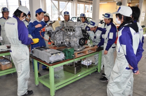 同校は、トヨタのプリウスとホンダのインサイトを解体し、自動車教育用教材として整備し利用している。解体には教師指導のもと生徒も参加した。 授業では、今後益々、普及してくる最新技術を搭載したハイブリット車などについて、実践的な内容の授業が行われていた。 詳細は次回更新時に。 取材後記:自動車の変革期と呼ばれるなか、次世代を担う優秀な人材を育成しようとする試みには、継続的な国の支援が必要ではないかと思う。低圧電気取扱講習会でこの車両があれば、非常に役立つと思う。(三) 実習講義風景↓ 学生による走行テストの模様↓