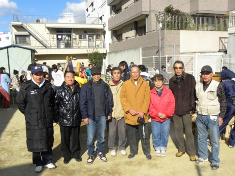 兵庫県自動車整備振興会の兵庫支部(清川拓司支部長)は12月20日、大開通10丁目・一番町一丁目自治会(阿部幸雄会長)が公園で開催した餅つき大会に参加した。