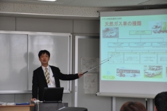 神戸で行われた講習会は2部構成で行われ、1部では大阪ガス(株)の担当者がCNG自動車について説明した。その中で、道路運送車両法や高圧ガスの保安、容器再検査合格証票などについて詳しく触れながら、特に天然ガスの特性について「開放された空間では非常に発火しにくい性質。また、一酸化炭素が含まれないので中毒の心配もない」と参加者に分かりやすく説明した。