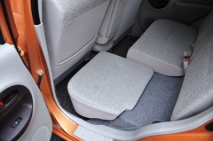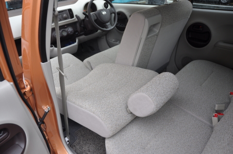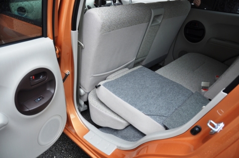 「素」の美しさを極めたシンプルなデザイン。卵型をイメージしたコンパクトボディ(全長3,640mm、全幅1,665mm、全高1,535mm)は初心者に優しい。リビング空間を再現させるため、前部はベンチシートを使用。担当者は「小型車であるため、軽自動車よりは少し空間が狭い。しかし、トルクが小さい軽自動車に不満を持つユーザーの乗り換えに期待できるのではないか」とセールスポイントを述べた。