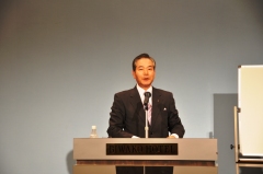 第二部の研修会では昭和48年よりお好み焼き専門店「千房」を営み、非行少年少女を積極的に採用し、青少年の社会教育家として注目を集めている中井政嗣氏が「育つ育てる人の心〜誰でも成長者になれる〜」をテーマにで、落語調でおかしく会場をわかせながら、自身が経験の中で学んだいつの時代にも大切なことについて講演を行いった。