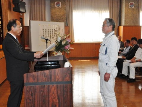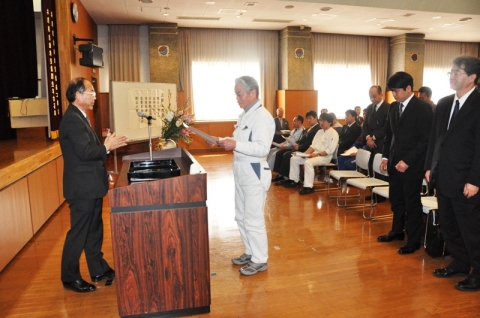 局長表彰者を代表して小柴文吉さん(小柴モータース)が表彰状を授与。全受章者を代表して有限会社石川自動車整備が「整備業界でも使用済み自動車の処理、リサイクル品の活用など環境・循環型社会に適応することが求められている。今後も技術の廉磨に努めたい」と謝辞を述べた。 勝田陸運部長は「自動車の適切な維持管理を支えるのは皆さま整備業に関わる方々です」、また、橋本会長は「整備業界が社会的使命を果たすために、経営基盤の確保 事業の発展に尽力することが整備業界に求められています」とそれぞれ祝辞を述べた。
