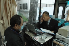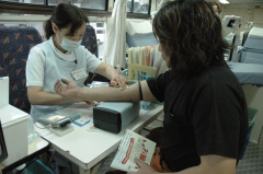 当日は朝から小雨が降り、人が集まってくるかその動向が心配されていたが、午後の部の開始時間、午後0時半になると続々と人が集まってきた。総勢53名が参加した。 (有)中野自動車の中野良雄会長は献血活動の狙いについて、「兵庫支部は昔からの整備業者が多い。献血を始め支部の活動にもっと若い人が来てくれるようになれば。献血もその一つのきっかけ」と話す。 献血活動に協力した橘自動車整備(株)の太田力さん(36)は「献血もなれれば怖くないですね。この血が世界の人々の力になれば」と話していた。