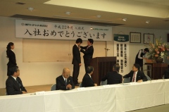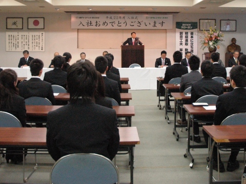 国家と社歌斉唱の後、新たに入社した社員一人一人の名前が読み上げられると、新入社員らが緊張した面持ちで椅子から立ちあがり「よろしくお願いします」と力強い声であいさつを行った。 西村太一会長が「神戸トヨペットは昨年、創業54周年目を迎えた伝統ある会社です。また、レンタリースの方は創業20年。期末決算も順調で特別賞与も出るというように業績が順調です。フレッシュな感性と若さ、バイタリティを生かし会社の中で十分にご活躍されることを期待しております」と祝辞を述べた。 また、西村社長は「小さなことを積み重ねるのが成功の秘訣。陰日向(裏表なく接する)、適度な緊張感を持つ、不平不満を言わない(自己を内省する)の3つを仕事などで落ち込んだ時に思い出して下さい」とアドバイスした。 新入社員を代表して、神戸トヨペットの中田圭亮さんが「一日も早く社風に親しみ神戸トヨペットグループの一員として持てる力を十分、発揮し会社のご期待に沿えるよう努力いたします」と決意を述べた。
