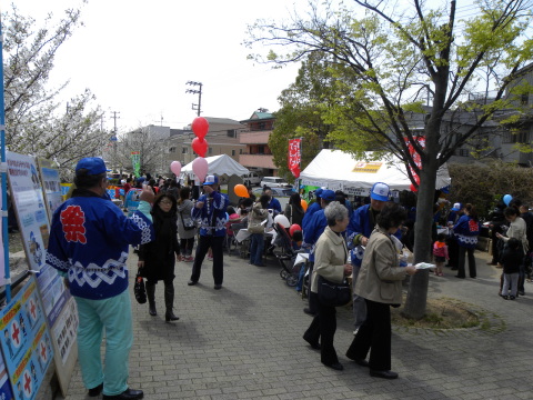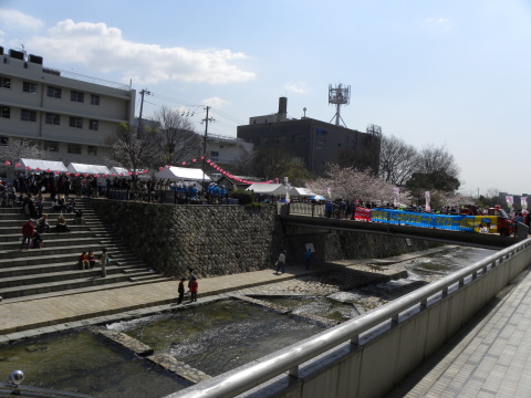 兵庫県整備振興会神戸東支部(咲山周一支部長)の支部員23名は4月3日、なださくらまつりに出展した。雲ひとつない晴天の中、都賀川公園で満開に咲いたさくらが参加者を出迎えた。