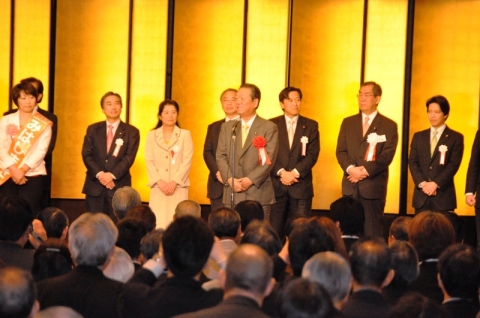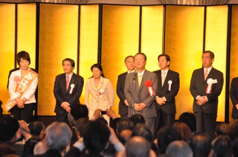 今夏に行われる参院選に関して、小沢氏は政権交代の最終戦であると位置付けたうえで、「衆院選では308の議席を持っているものの、参院ではまだ過半数の議席に達していない。何としても今夏の参院選で過半数の議席を獲得しなければならない」と訴えた。 また、小沢氏は複数区での複数擁立の問題についても触れ、「複数区で複数の候補を出すことで全国から憎まれている」と述べたうえで、「現職は連合など支援母体の力を借り当選を目指し、2人目の候補は既存の団体から一般市民へと支持を広げることで、必ず2人を当選させることができる」と強調。 参院選兵庫県選挙区からの擁立が決まった現職の水岡俊一氏、新人の三橋真記氏の2人を激励した。なお、三橋氏は東大卒業後、厚労省に入省。伊丹市や総務省への出向経験もある。在職中は地域雇用対策や子育てなどの問題に取り組み、雇用、福祉問題などの分野にも明るいという。