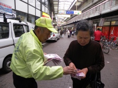 新開地の大阪ガスビル前から、湊川パークタウンまで、商店街を行進し、湊川パークタウンのダイエー前で兵ト協タオル及びティッシュ等を配布し、地元住民に事故防止を訴えた。 >>2ページ目へ続く
