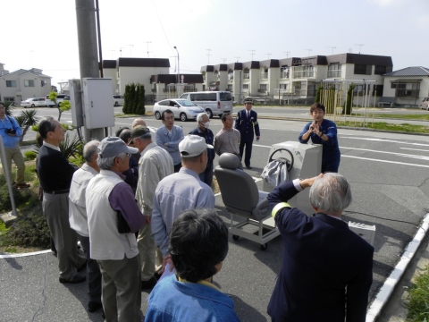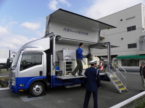 スクールは恒例となっており、神姫バスが送迎を行った。ハイブリットカーの特徴(兵整振)、トラックの巻き込み実験(兵ト協)、自動車の運転教習(自動車学校)などを行い、中でも電動いすの運転教習(スズキ)や時速5キロの衝突を体験できるシートベルトコンビンサー(JAF)が好評で衝突実験を試した高年クラブの男性は「すごかったです」と話し、わずかな走行速度でも予想以上の衝撃があることに驚いた様子だった。