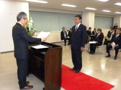 事業者間での交通安全意識の向上と、運転事故の防止を図ることを目的に、昭和29年に始まり、車両数に応じて、6ヶ月から5年を1期の期間終了後、候補者を選定し、近運局が受賞者を決定する。今期は20社が栄誉に輝いた。 兵庫県内からは津名観光バス(株)、兵庫中央バス(株)、日本交通(株)の3社が受賞した。 村山伊知郎近畿運輸局次長は「近畿でも、昨年の6月29日に近畿地域安全対策会議を起ち上げ、今後10年間で人身事故削減、飲酒運転の根絶などを目指して安全の確保に務めて参りますので今後とも運輸行政に協力を」と祝辞を述べた。 受賞者からは熊野交通(株)の永田潔代表取締役社長が「昨年、制定された事業用自動車総合安全プラン2009に基づく事故削減目標に向けて今後も事業運営をしていきたい」と代表して謝辞を述べた。