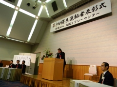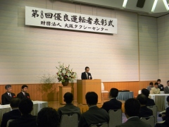 第8回目となる優良運転者表彰に府内から51名(法人46名、個人5名)が選ばれた。 表彰の対象は過去5年間で行政処分を受けておらず、3年間内に利用者などからの苦情がタクシーセンターに申告されていない、違反などによりタクシーセンターから指導票などで指導を受けていない者のうち、過去1年間に責任事故や道路交通法の違反がない運転者。 来賓に長井総和近運局自動車交通部長、川畑耕也大阪府警交通部交通総務課長、関淳一大タ協会長が出席し、祝辞を述べた。 長井部長は「タクシーサービスは厳しいと言われる中で、安心、安全、快適、便利が基本だと思います」とあいさつし、関会長は「我々は公共交通機関としての役割を自覚し、先頭に立って、タクシーを必要としている足腰の弱い高齢者の方々など、多くの方々に当たり前のサービスを提供していきましょう」と受賞者を激励した。 優良運転者に選ばれた(株)駒姫タクシー(藤原悟朗社長)の泉さんは「これからも真面目にしっかりやっていきます」と話していた。
