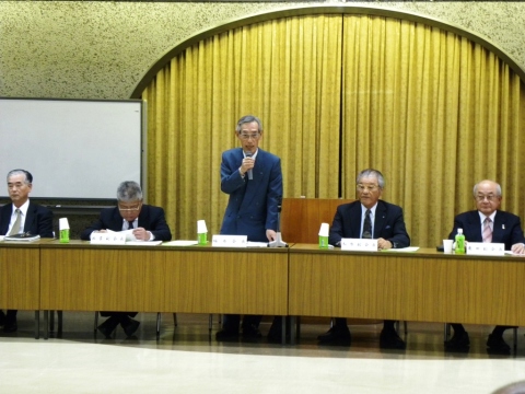 冒頭、福永会長はギリシャの金融不安から株式市場が再び悪化したこと、原油の値段が1パレル85円前後で推移していること、兵庫県貨物運送協同組合連合会のシュミレーションによると85%が実質値上げになる新高速道路問題について触れ挨拶を行った。