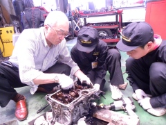 先生を目指していた川崎さんは、専門書でエンジンの仕組みを説明した後、実際にエンジンを分解し、さらに復習を行うなどの工夫を凝らしていた。また中学生だからといった手抜きはしない真剣勝負な姿勢が印象的だった。 神戸市立唐櫃中学校の杉林さんと瀬川さんの2人は「ものを壊さないかととても気を遣います」と緊張した面持ちで取り組んでいた。