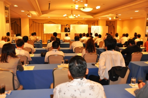 6月1日付けで就任した松川輝義社長は、冒頭挨拶で、神奈川で17年間、埼玉に6年間勤務し、今回初めて近畿地区に着任したことなどを触れた。さらに「変化の激しい環境に着いていくために、交流会を増やしていきたい」と交流会の位置づけを話した。 ビジネスと心理・コンテンツ・システム・実践および基礎の関係性を研究している水野勝弘氏を講師に招き「『お客様学』元気が出る商売の話」について講演会を開いた。水野氏は「個人の心理がマーケットを作る時代」と今日の時代を表現。 ・ひとの心理には原則があり、マーケットを動かす⇒それは限定されることにある⇒ひとは非日常的なことに魅力を感じる⇒それは時間限定販売⇒イベントは短く⇒限りあるから集中する⇒それが集客力になる。 ・従業員に相手を気持ちよく出来る人を集めた方が勝ち⇒初めての人とどのように会話するか⇒相手といちはやく共通点を探す⇒3回目までに他人関係を知人関係にする⇒一番難しいのは他人関係を他人関係を続けること⇒お客様とはお付き合いすること。 など、セクハラの心理や女性に好かれる方法などを交え、さらに出席者を参加させるなど会場は一体感に包まれた。