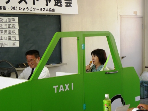 第一部の第一印象のチェックの中で飾磨交通(株)北岡立美さんは「なぜ、乗務員になろうと思ったのですか」という審査員の質問に「生計を立てる為です。タクシー業界は男も女もないという仕事。運転も好きだったので楽しんでやっています」と緊張した口調で返答した。