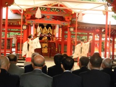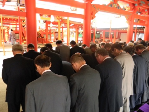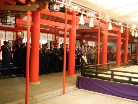 兵庫県トラック協会(福永征秀会長)は9月27日、生田神社において交通安全祈願祭、交通事故犠牲者慰霊祭を執り行った。各支部の代表者交通対策委員及び事務局ら約60名が参列した。