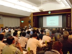 日産自動車(株)の担当者が12月から発売を予定している日産リーフの話を交えつつ、「EVの普及や環境に対する取り組み」(第一部)、「EVアフターサービスに向けた取り組み」(第二部)について講演した。 日産の二階堂洋さんは充電機の問題を取り上げ、「普通充電の場合、30分もあれば、電気を充電できる。EVの場合、リチウムイオン電池、バッテリーの開発に着手しているが、スペックは高くても活用できないという問題があり、熱をどう逃がすかが問題」と充電インフラや今後の課題について解説した。