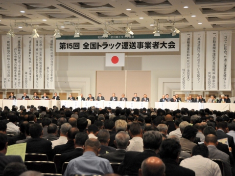 全日本トラック協会は4日、全国からトラック運送事業者約1500人が集まり『全国トラック運送事業者大会』を横浜市のパシフィコ横浜で開催した。