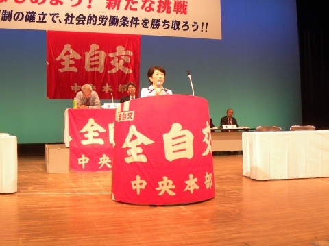 来賓出席した福島みずほ社民党党首は「特措法は第一歩だが労働者の権利を守るもの。今後は道運法改正や新法制定に向けて国会で働きかけをしていきたい。労働という問題では、連合も雇用憲章を作りたいと言っている。働く人の長時間、低賃金をどうやってなくし、どうやって同一価値労働、同一賃金を保障するのか。労働というものが国会や政治、社会の中でも重要性が認識されていない。もし、労働憲章を作ることができれば、働く人の地位や社会分配率も変わっくると思う」と述べた