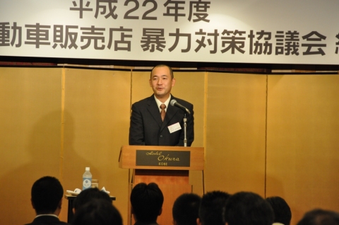 四宮陸男会長は冒頭あいさつで、兵庫県議会で暴力団排除条例が可決されたことなどを取り上げ、暴力団断固拒否を警察本部ならびに自動車販売店と連携をとりより一層活動を強化することを再確認した。
