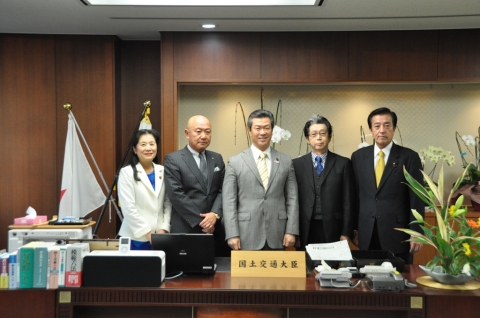 兵庫県トラック協会原岡謙一東部支部支部長と寺本徳成副支部長は11月29日、室井秀子衆議院議員と室井邦彦参議院議員とともに馬淵澄夫国土交通大臣を訪問した。