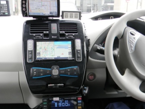 専用乗り場は3月3日に設置。利用時間は午前10時から午後6時までで、京都乗用自動車協会加盟の5事業者から11台を運行する(EV6台・日産リーフ、PHV5台・トヨタプリウス)。専用乗り場が設けられるのは府内で初めてで、車体は青色で統一されている。200ボルトの充電機を備えた充電スペースもある。 ―3月上旬。専用乗り場からEVタクシーに乗車してみた。 今回、乗車したのは日産リーフ。タクシーを運転する都タクシーの高宮美代子さんは以前、同社で三菱自動車の「i-MiEV」を運転していたという。 「走りたいときに充電の残量を確認しなければならないんですが、慣れくると、安心して運転できるんですよ」と高宮さん。 ―信号が赤になる。車は音もなく静かに止まる。 「難点は音が静かなこと。低速でお知らせ音があっても小さな音なので気づいてくれない人が多いんです。京都は細い道が多いので、クラクションの鳴らし所も考えてるんです」と高宮さんは笑う。 ―目的地周辺に到着。また、信号が赤になり、車が止まる。 「ご乗車されるお客様の中にはあっ!?この間、ニュースに出ていた、今、話題のタクシーと言われる方もいらっしゃるんですよ。EVタクシーはこれからですね」と高宮さんは再び笑った。
