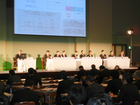 EV・PHVタウン構想に参画している自治体や、学識経験者、国内大手の自動車メーカーの担当者らが出席し、パネルディスカッションと各取り組み状況を発表した。 >>2ページ目へ続く