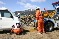 東日本大震災の支援を目的に編成した日本自動車連盟(田中節夫会長)の「JAFロードサービス特別支援隊」は4月7日から北海道本部・関西本部・中国本部・四国本部・東北本部(秋田支部)の合計38名で編成した第3期支援隊を派遣し、被災車両の移動などの救援活動に取り組んでいる。