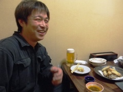 足早に集合場所の日本料理店へ。港が近いこともあり、潮風が通り抜け、海の香りがする。対岸は阿波国(徳島県)。おこぜ、さざえ、鯛、じゃこ飯。口の中がとろける。新鮮の一言だ。 隣の席で、舌つづみを打つのは片山博文さん(南あわじ市・デントリペア・カタヤマ)。「車についた小さなヘコミ(デント)を専用特殊工具を使って、短時間で元の状態で直すのが仕事なんやわ」。片山さんは生ビールのジョッキをぐいっと仰ぎながら、陽気に笑った。「デントリペアの特徴はね〜。早い、安い、キレイに尽きるわ〜。短時間で修理が出来て、板金塗装費用の半分以下で板金、パテ、塗装をしないから、オリジナルのまま」と片山さんはしっかりと自身が生業とする技術のPRも忘れない。 そのうち、仕事や用事が終わり、駆け付けた同業の仲間たちが加わった。場がにぎやかになってきた。「淡路は食べ物がうまい!!」片山さんは楽しそうな顔でビールをまた、グイっと飲み、おこぜの唐揚げを美味しそうに頬張った。 *ペイントレス・デントリペア専門店片山自動車の連絡先はTEL・FAXとも0799―54―0322