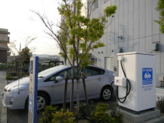 兵庫県淡路市の市役所駐車場に電気自動車(EV車)の急速充電器が設置された(4月20日から利用開始)。充電機は県が設置したもので、当面は無料で使用できる(淡路市管財課で申請)。30分で80%を充電できる。今回の取り組みは電気自動車の普及啓蒙活動の一環。淡路市の他、但馬の養父市上野の道の駅但馬楽座駐車場にも急速充電器が設置されており、17日から利用が開始されている。