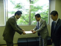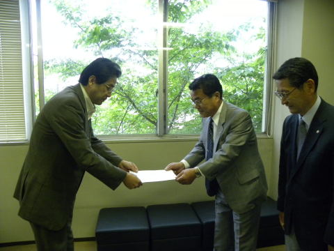 兵庫県自動車車体整備協同組合(津田信行理事長)は5月11日、国土交通省神戸運輸監理部兵庫陸運部を訪問し、「自動車車体整備事業の認証制度化の創設に対するお願いについて」と題した要望書を藤田裕隆兵庫陸運部長に手渡した。