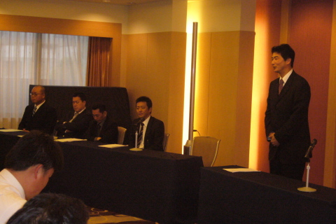 (株)兵庫中部運輸の赤松茂安氏は部会長としての最後のあいさつで「自信を持って部会長を退くことができます」と部会を会員の協力により無事やり遂げたことに感謝し、「東日本大震災へのチャリティーボランティア活動等、難題は多いが、新人事の方にはこれまで以上に活躍していただきたい」と新人事を励ました。なお、赤松氏は同部会の相談役に就任する。