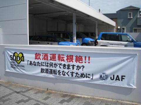 JAF 飲酒運転根絶!!「SDDプロジェクト」の横断幕を掲示